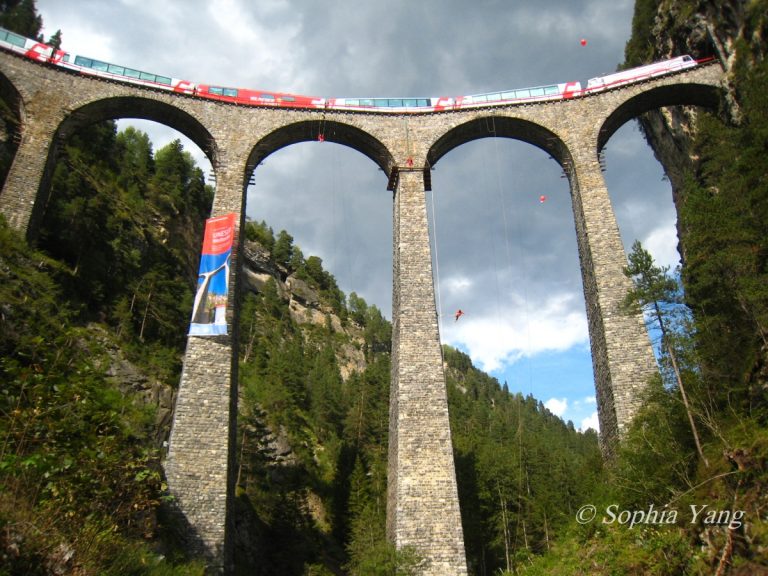 相較冰河列車那緩慢、慵懶的氛圍,南起義大利的蒂拉諾(Tirano),北行至瑞士聖模里茲(St.Moritz)與冰河列車交會,接上阿爾布拉鐵道的伯尼那列車(Bernina Express) 不僅行駛速度較快,景色更是千變萬化,沿途風景高潮不斷,幾乎毫無冷場,尤其是靠近義大利邊境的360度大迴旋,從空中看美極了,說它是全球最美火車路線並不為過。
