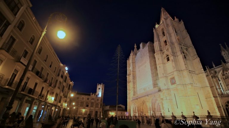 同樣位在朝聖之路上,萊昂(León)算是相當熱鬧的大城,中心則是像很多歐洲城市,是圍繞著大教堂發展。但有別於其它歐洲教堂動輒要蓋上好幾個世紀,萊昂主教座堂(Cathedral of León)只花了一個世紀就蓋好,但教堂的彩繪窗倒是用了5個世紀才完成,總計達2千平方米,為西班牙之冠!少有人知高第在萊昂也有棟建築,而且這建築為了向Cathedral of León致敬,風格和他其他作品截然不同。